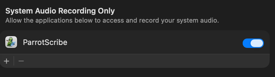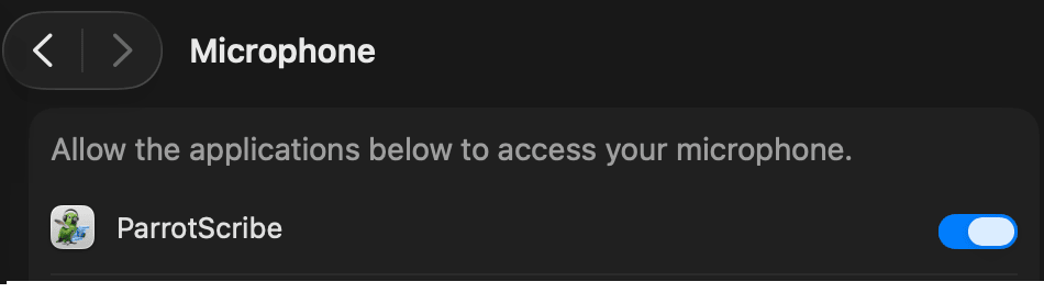 ParrotScribe needs specific macOS permissions to capture audio. If permissions aren't granted, transcription won't work.