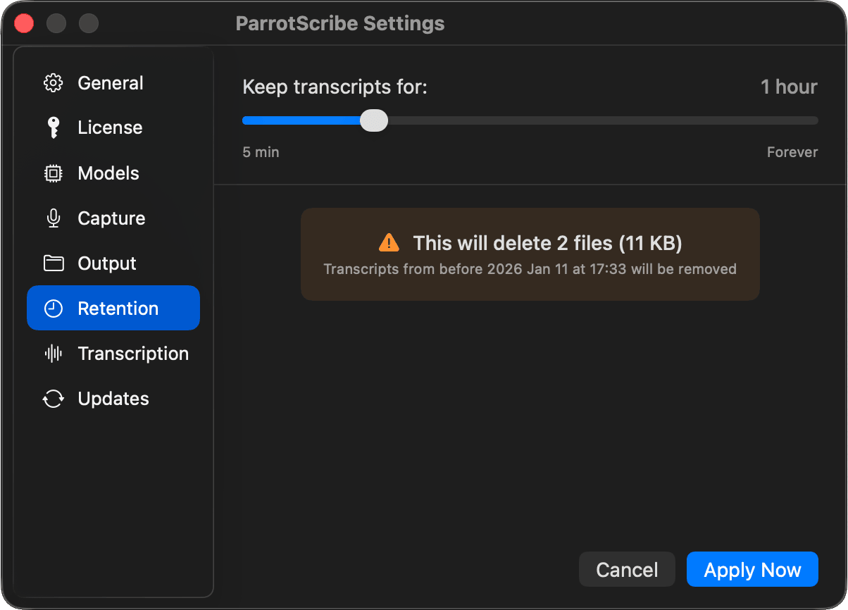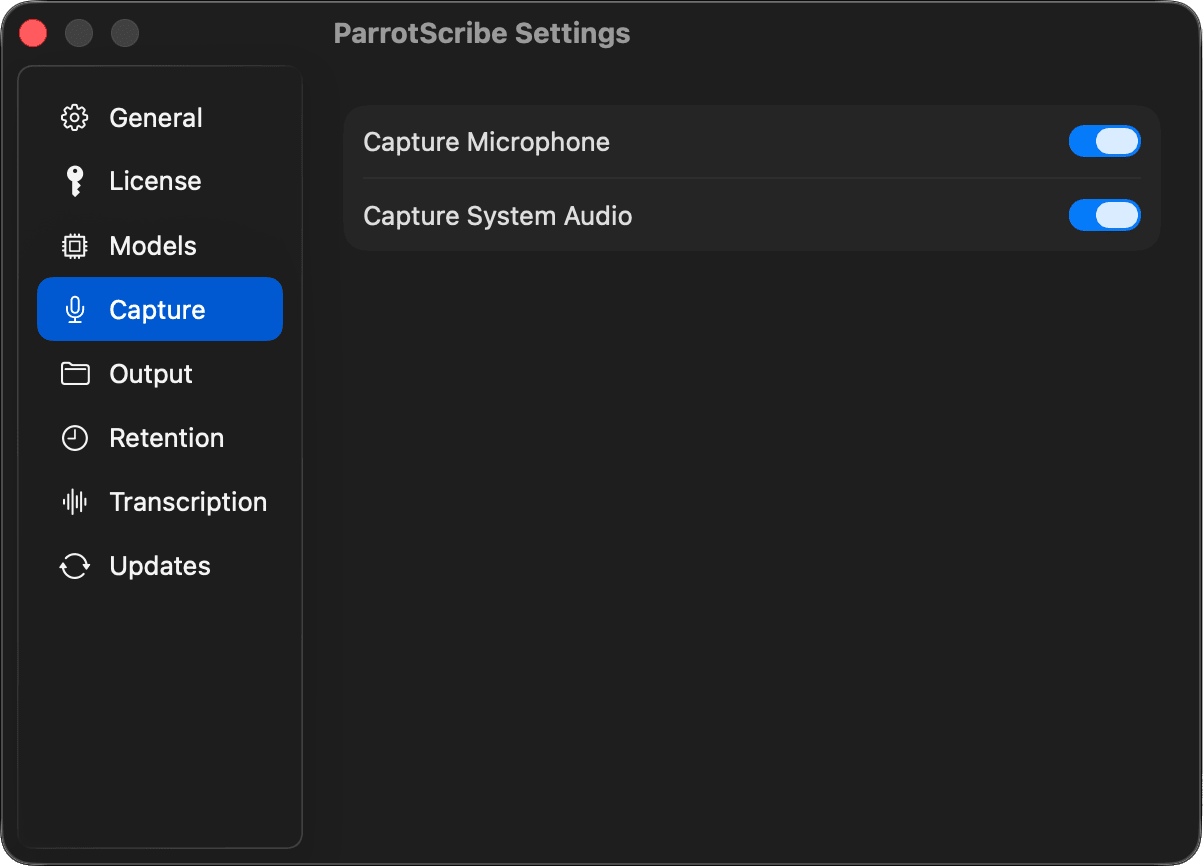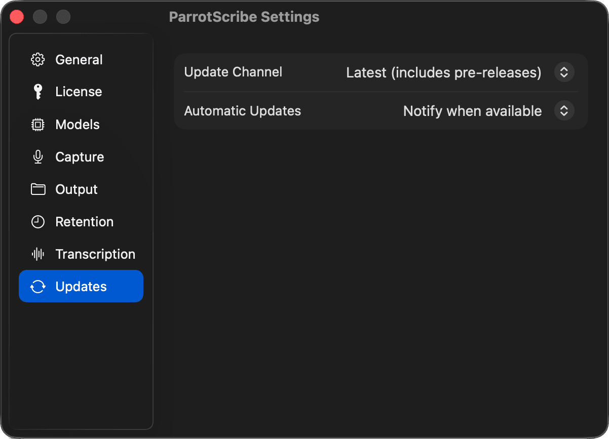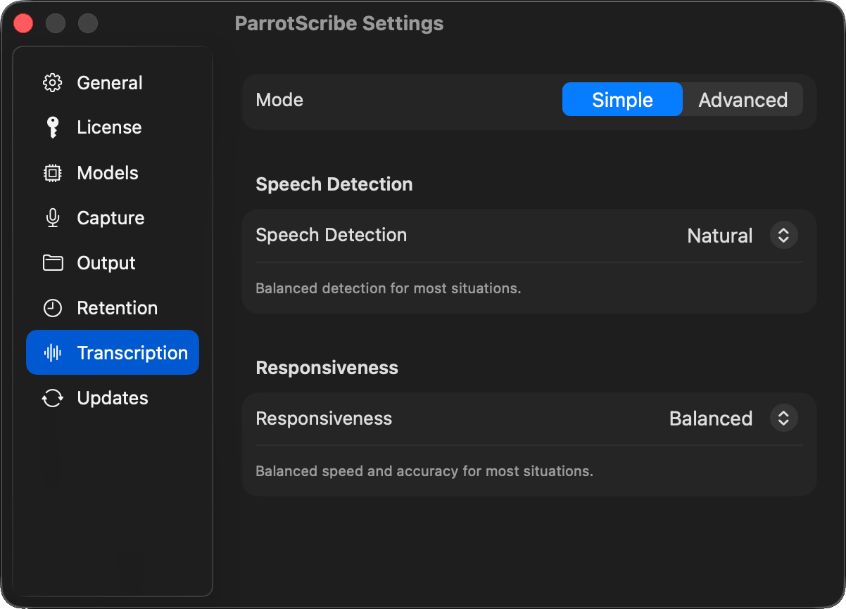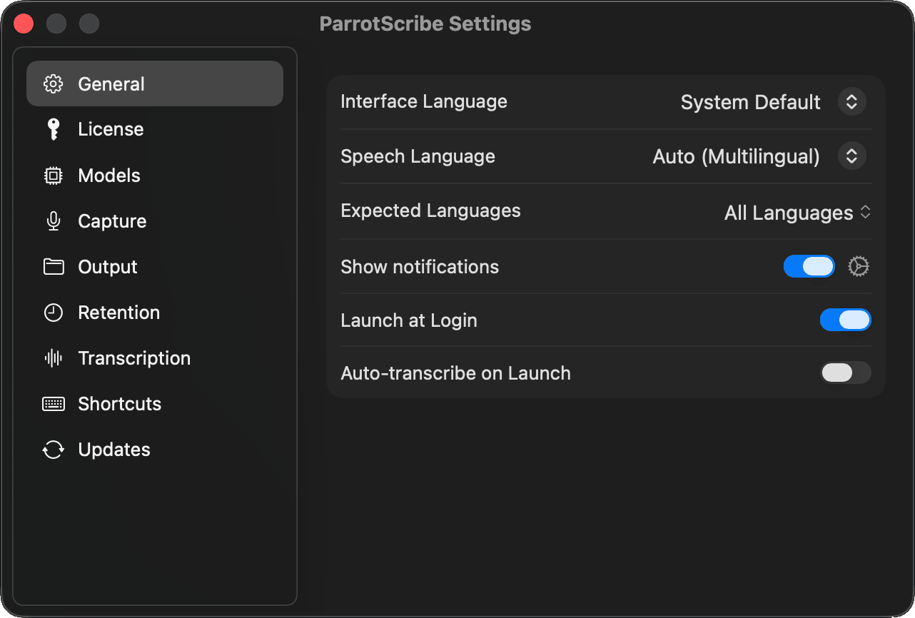 - Auto-transcribe on Launch - Begin transcription automatically when ParrotScribe starts