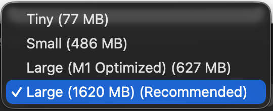 - Model - Select the Whisper model for transcription. Larger models are more accurate but require more resources.